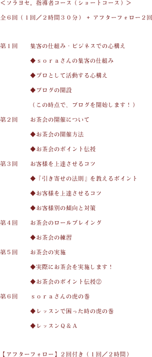 【料金】ソラヨセ。指導者コース(ショートコース)
